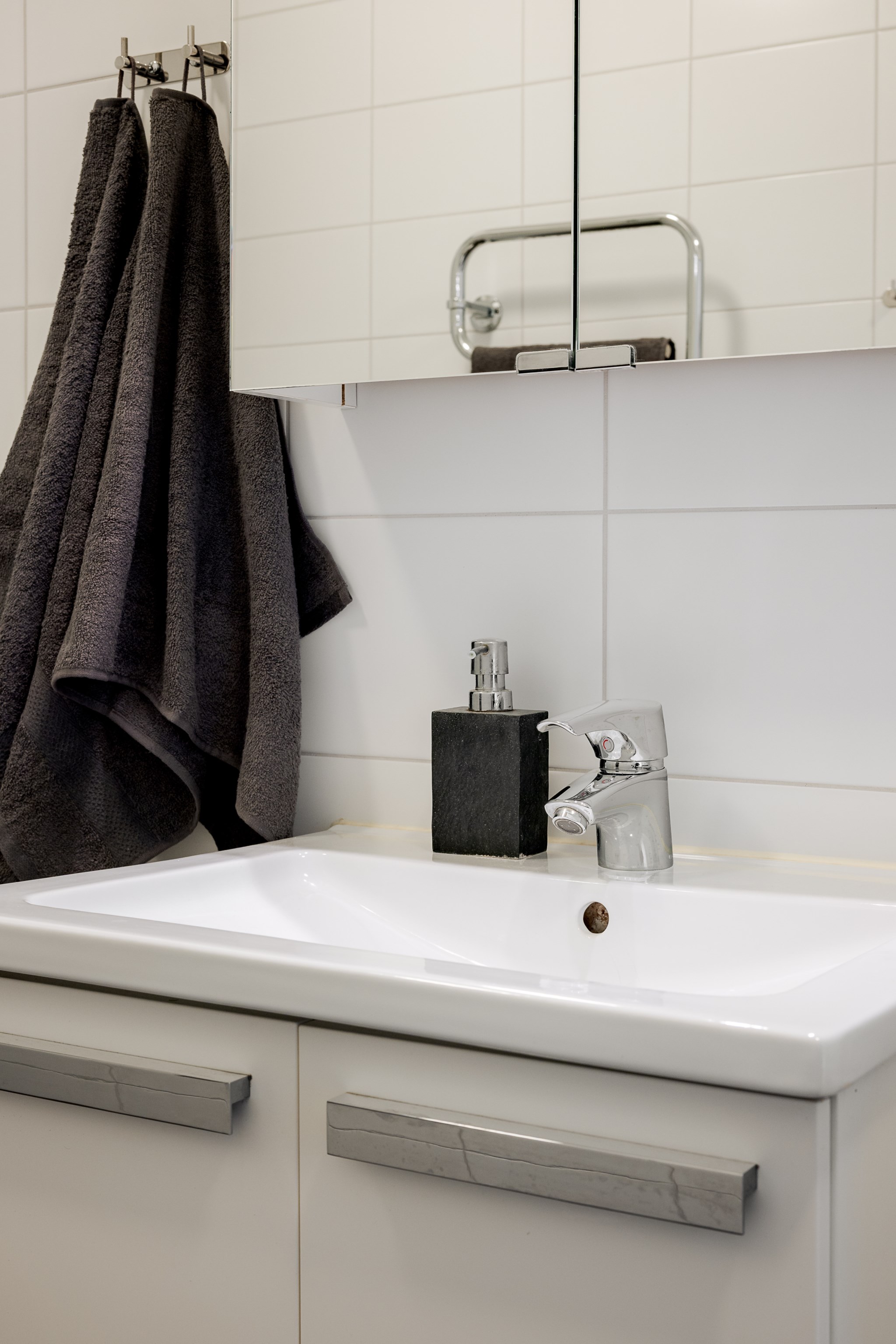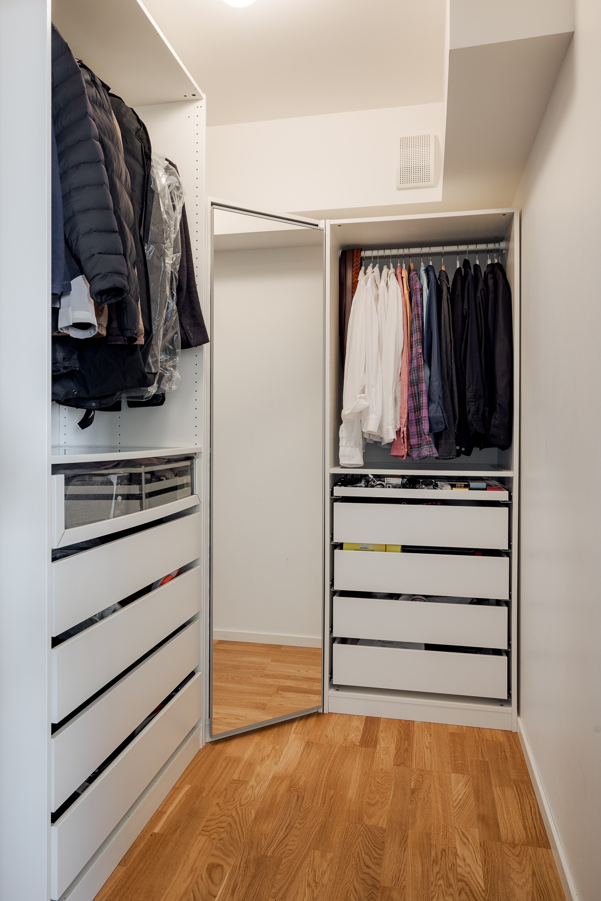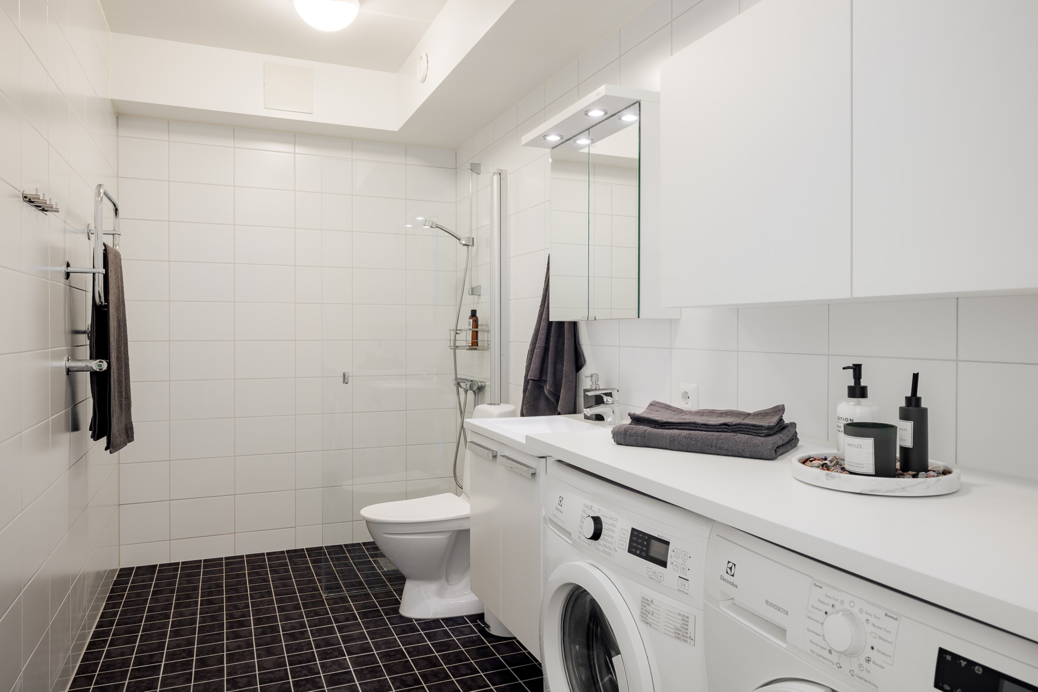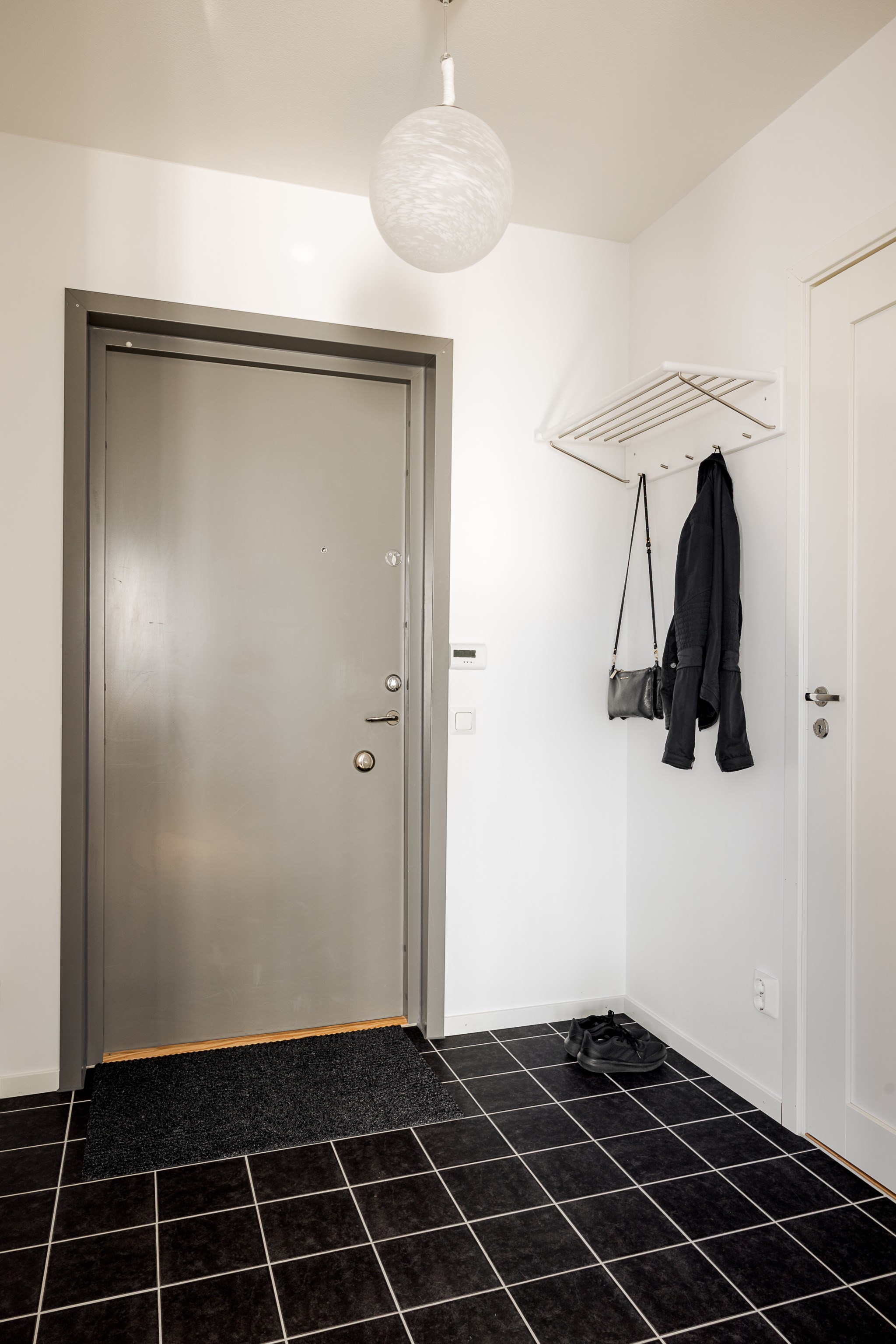 Sovrummet är rofyllt med utrymme för dubbelsäng och goda förvaringslösningar. Badrummet är helkaklat med modern standard, där både tvättmaskin och torktumlare är integrerade på ett praktiskt sätt. I hallen erbjuds ytterligare förvaring och möjlighet att skapa en elegant entré.