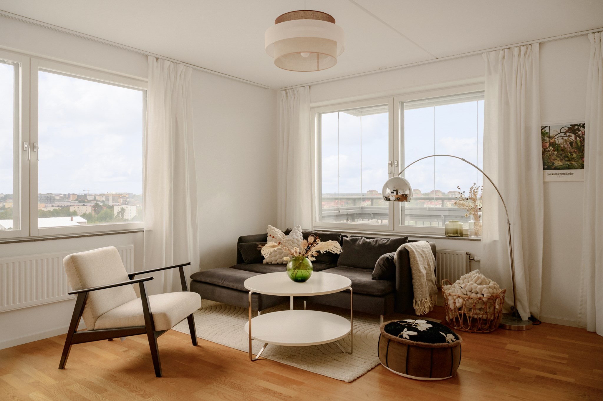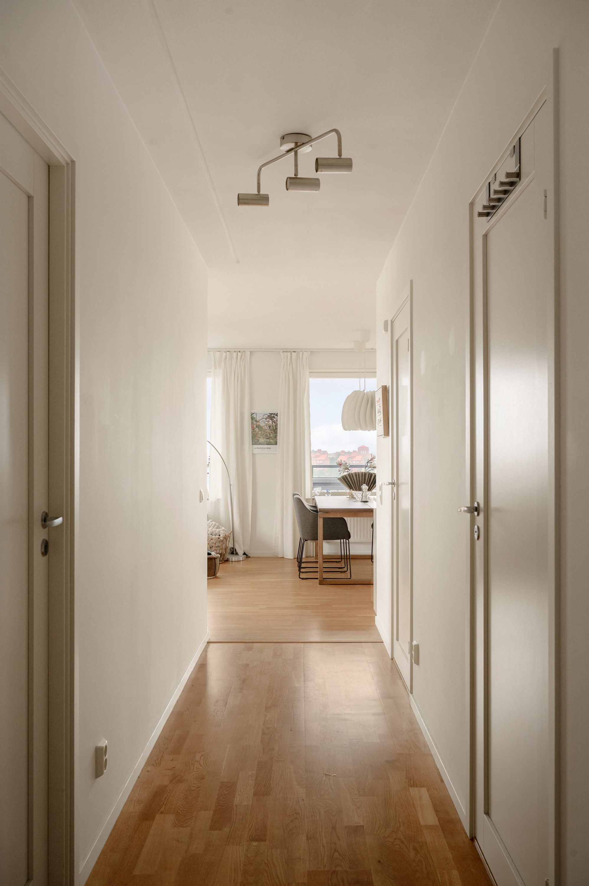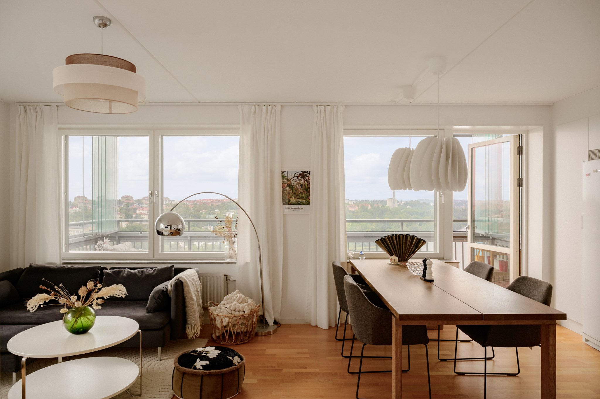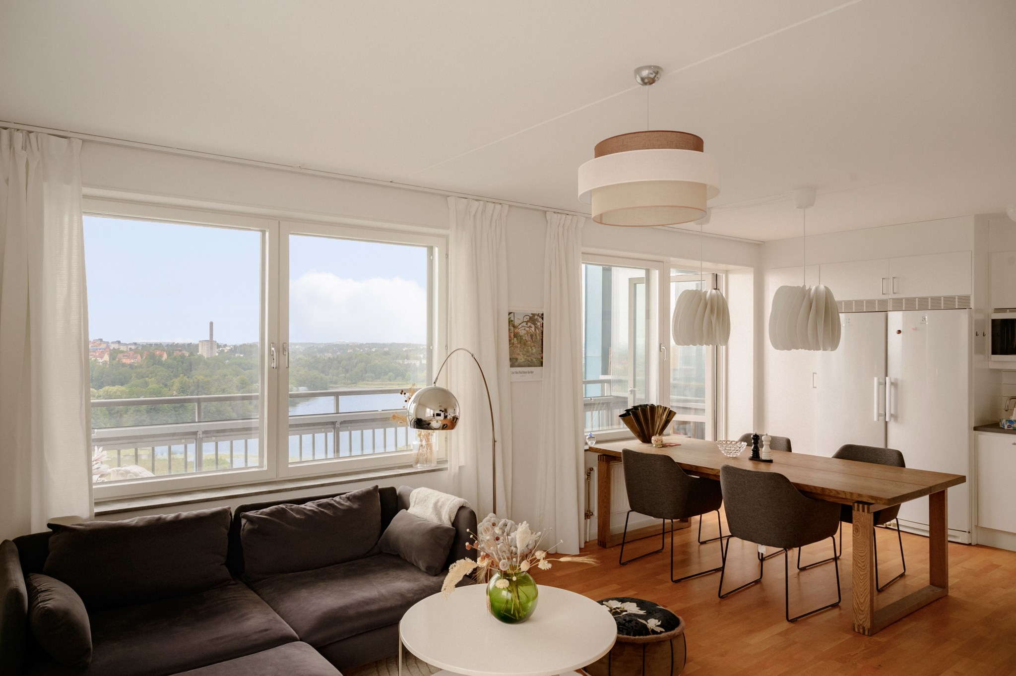 Huset värms upp av fjärrvärme och värmesystemet inom bostadsrättsföreningen är begränsat till att avge en maxtemperatur på 21°C i rummen.