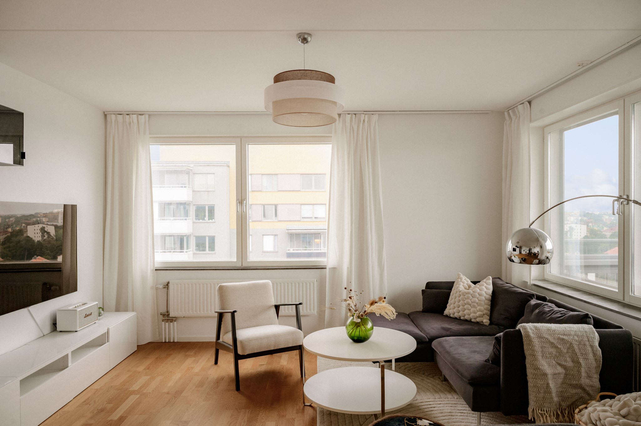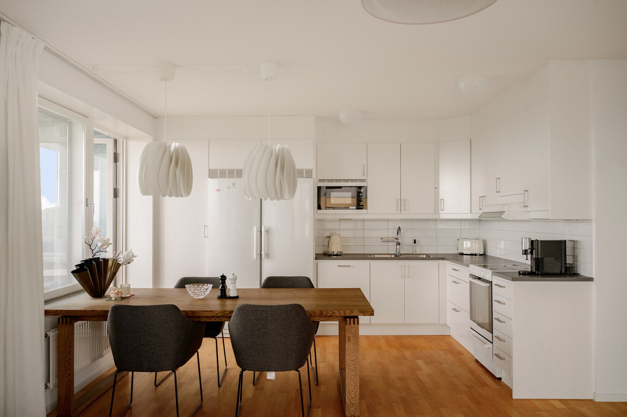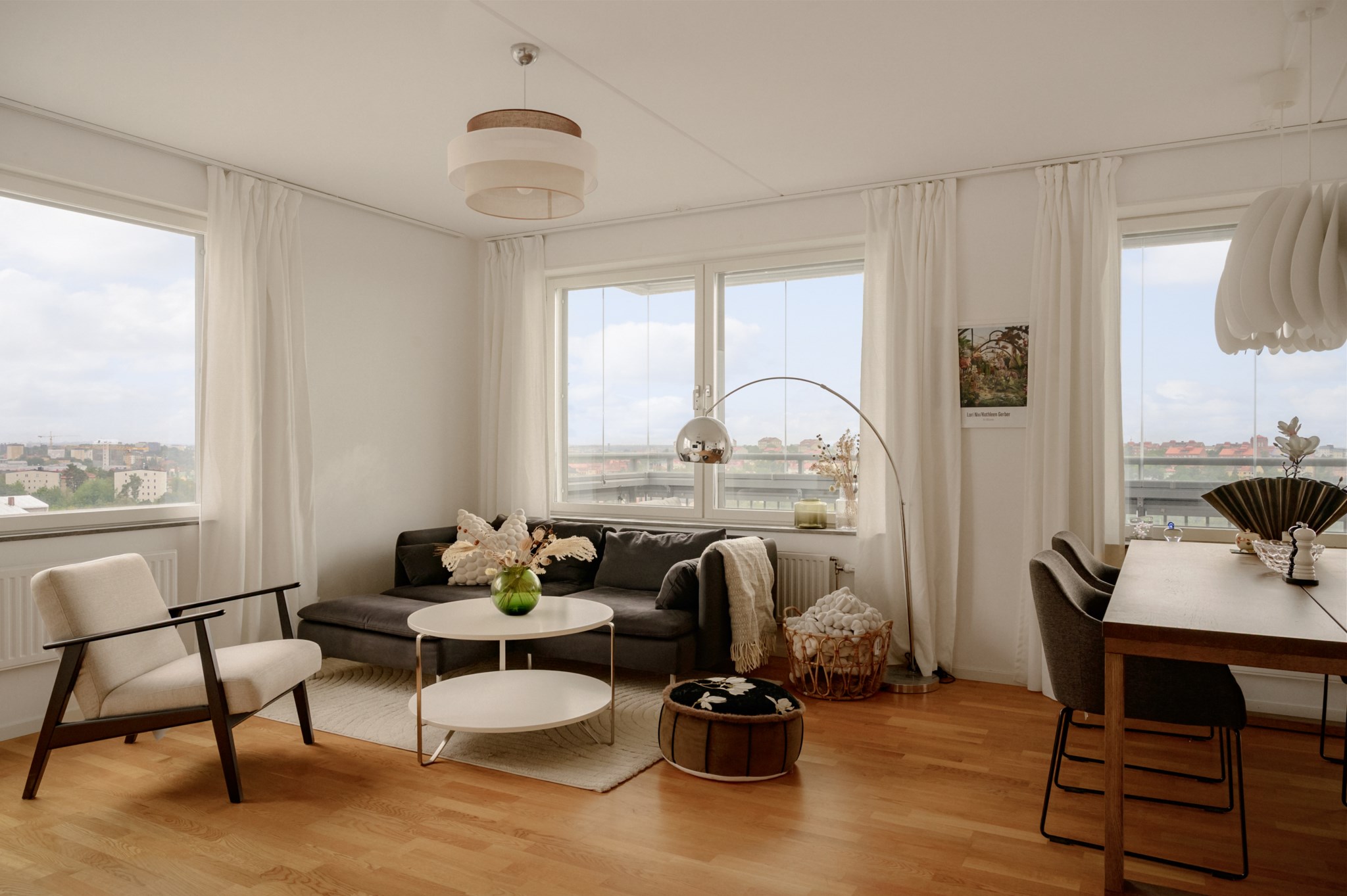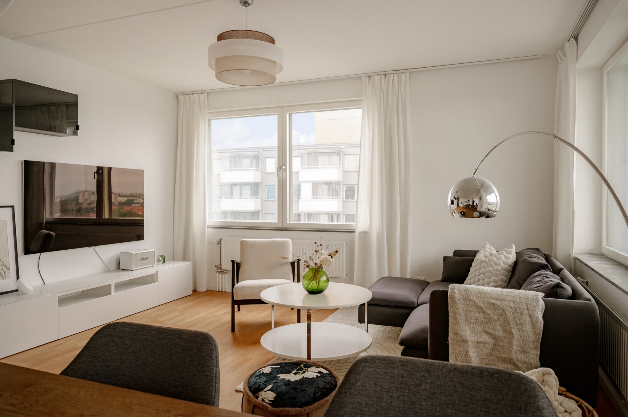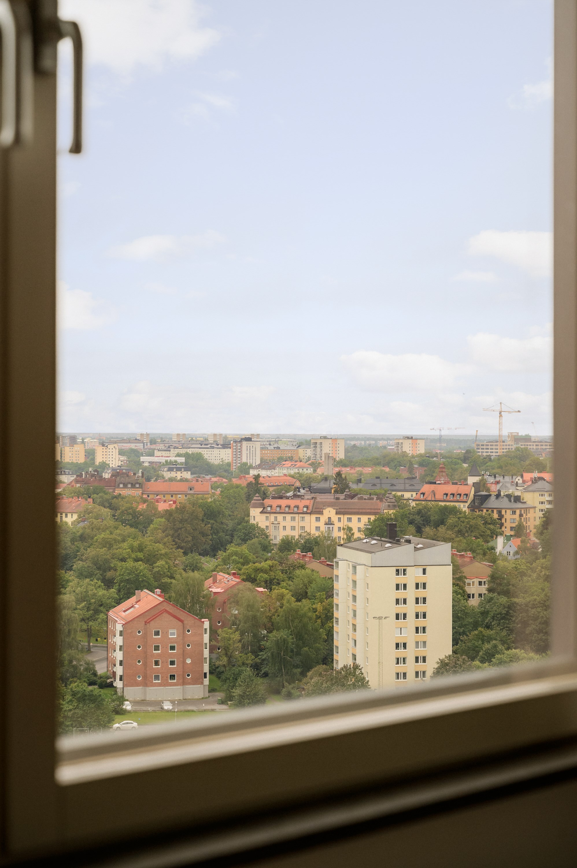 Huset värms upp av fjärrvärme och värmesystemet inom bostadsrättsföreningen är begränsat till att avge en maxtemperatur på 21°C i rummen.