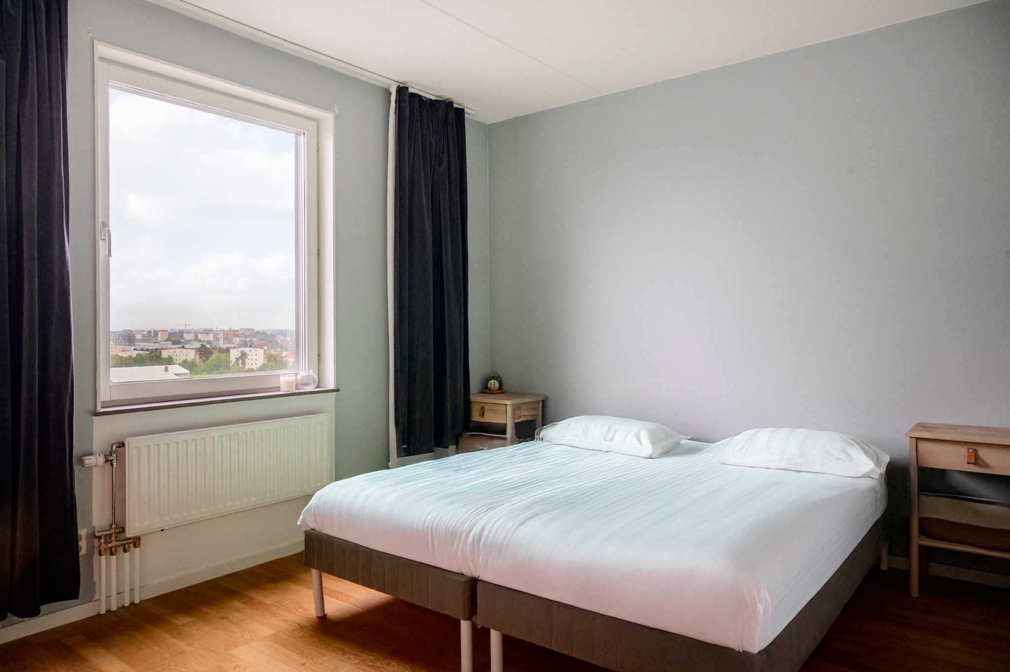 Byggnaden har två trapphus i en gemensam trapp- och hisshall.