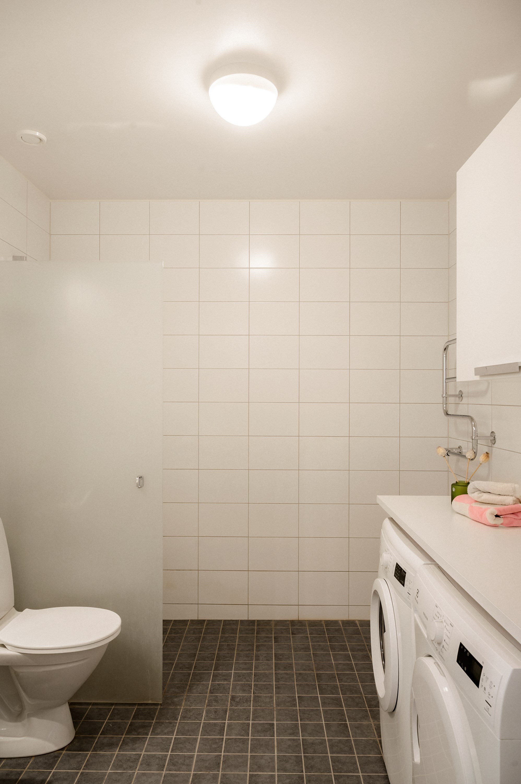 Gemensamma utrymmen för rullstols- och barnvagnsförvaring, soprum, tvättstuga samt städ finns i entréplanet.