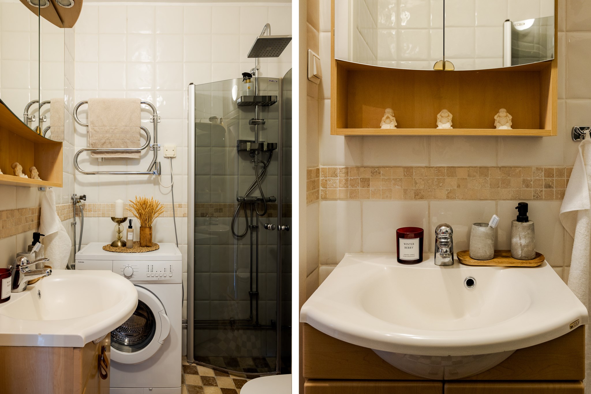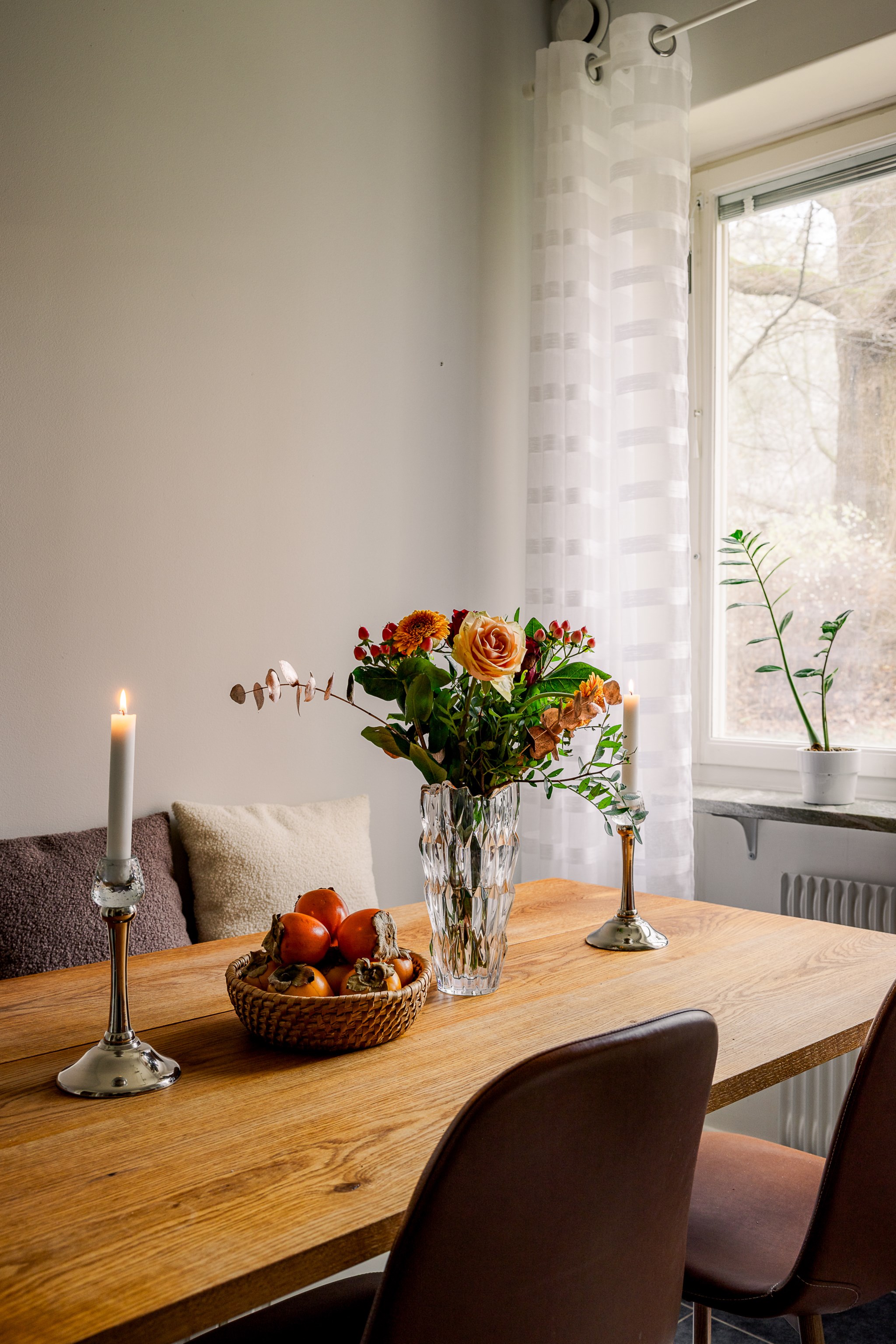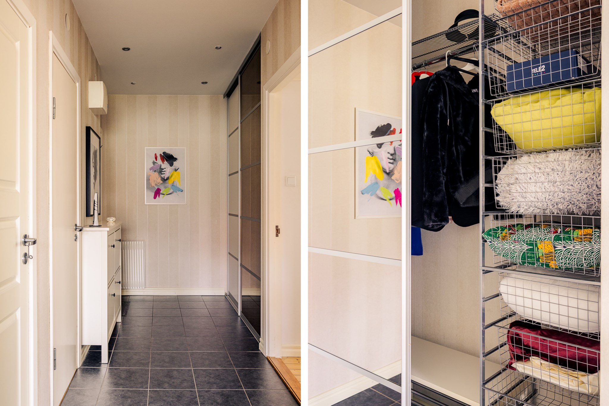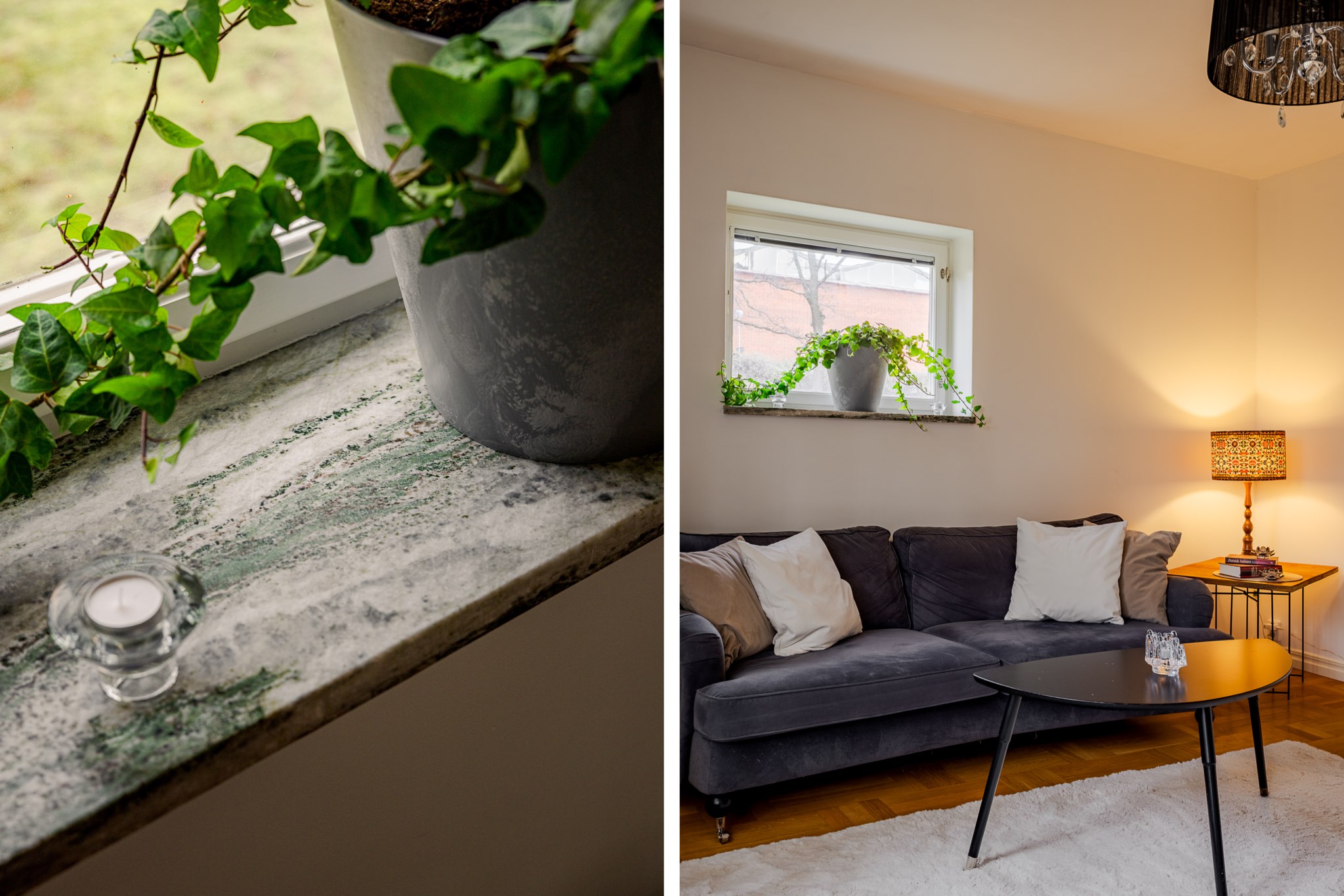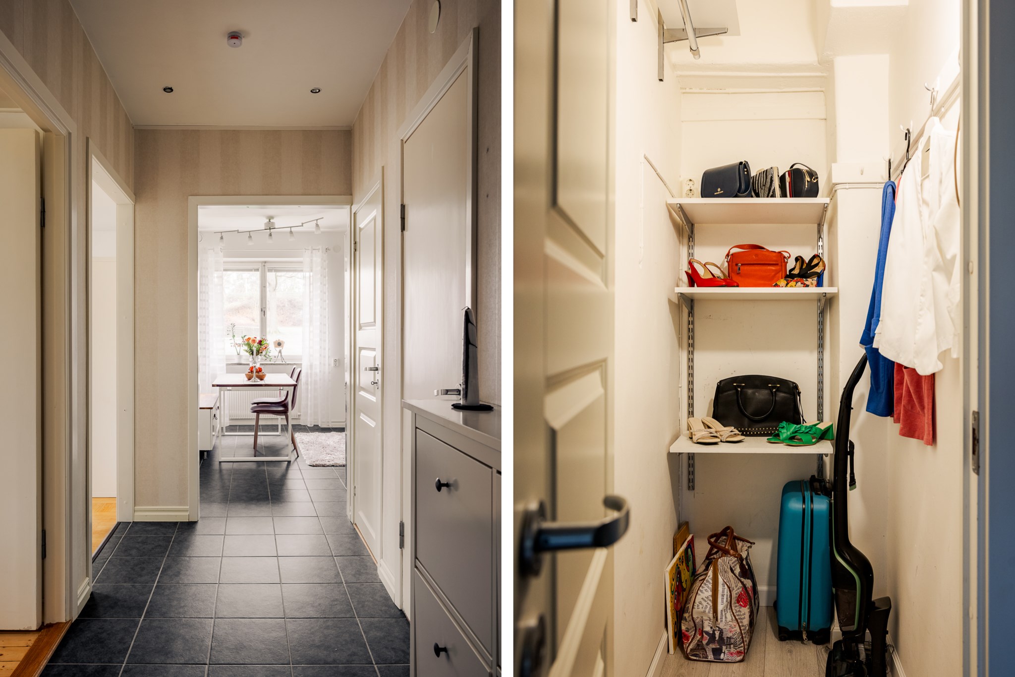 Bostaden är varsamt nymålad och badrummet stambytt redan 2004, vilket ger en trygg och välvårdad känsla. Köket är modernt och ljust, med gott om arbetsytor och förvaring bakom vita skåpsluckor. Den ljusgrå kakelraden lyfter helheten och fångar upp nyanserna i det mörkare golvet och de rostfria vitvarorna. Intill fönstret finns plats för ett större matbord där ni kan sitta med utsikt över grönskan. Sovrummet ligger mot den rofyllda baksidan och rymmer både säng, nattduksbord och god förvaring i garderoberna längs ena väggen. Den vackra trägolven och de ljusa väggarna skapar en harmonisk och inbjudande atmosfär som gör rummet lätt att tycka om. I anslutning till hallen finns också en rymlig klädkammare som både håller ordning och ger plats åt sådant som annars är svårt att förvara. Hallen är välkomnande, med bra avhängningsmöjligheter samt en stor garderob med stilrena skjutdörrar. Härifrån når ni även det helkaklade badrummet med dusch och vikbara väggar, tvättmaskin, handdukstork och spegelskåp.