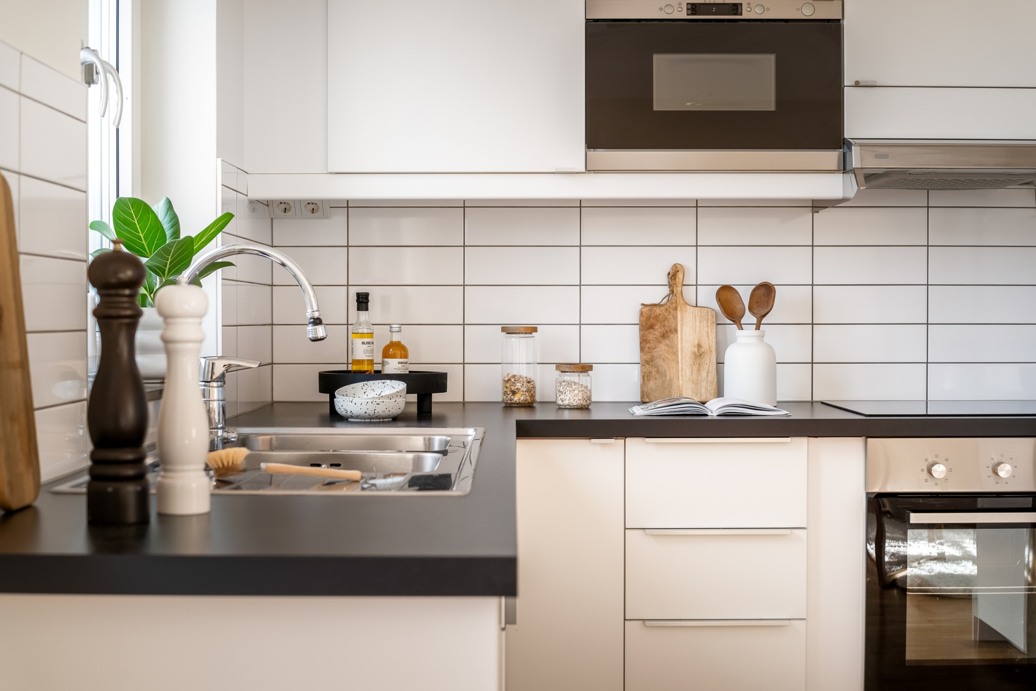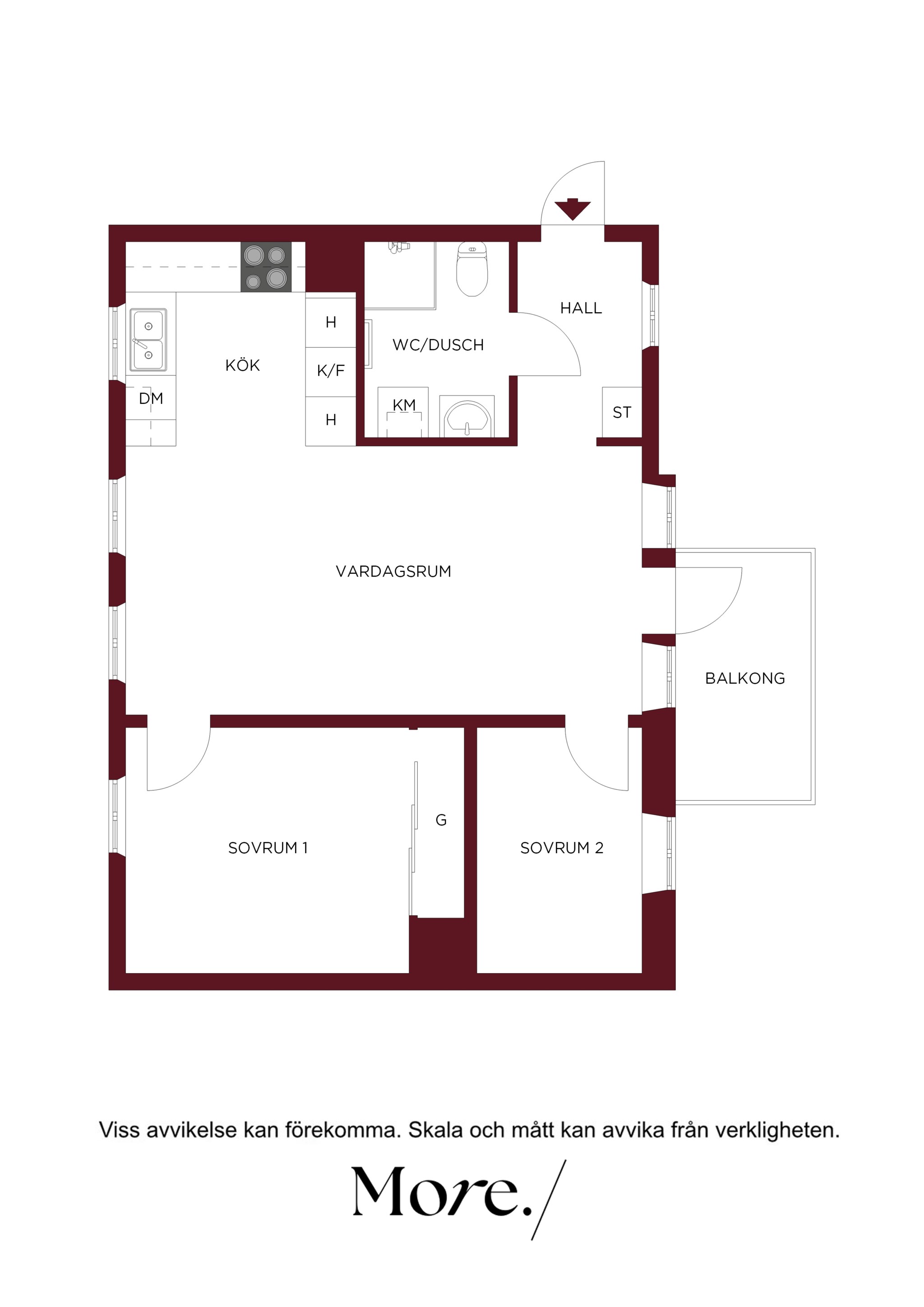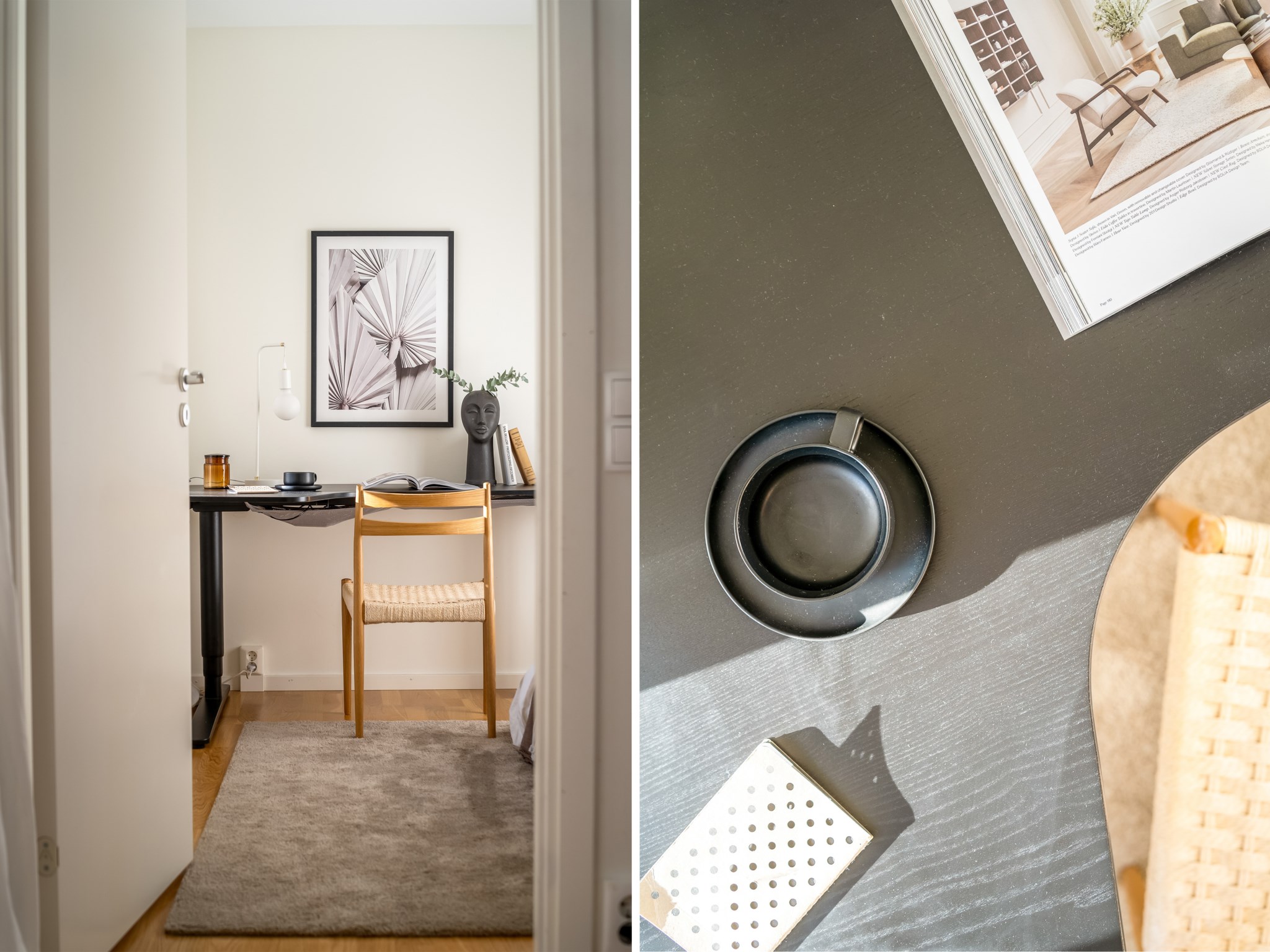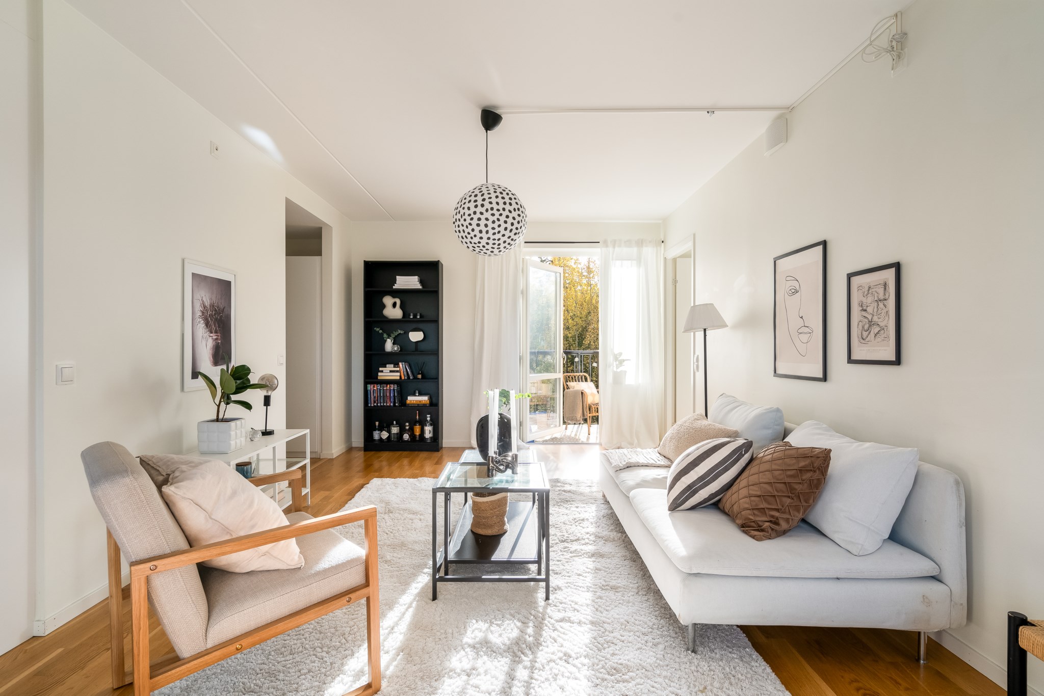 Köket är fullt utrustat med moderna vitvaror och erbjuder gott om arbetsyta för dig som gillar att laga mat. Från vardagsrummet når du den soldränkta balkongen med utsikt mot grönskande träd och föreningens lugna innergård – en naturlig plats för morgonkaffe, middagar eller kvällssol.