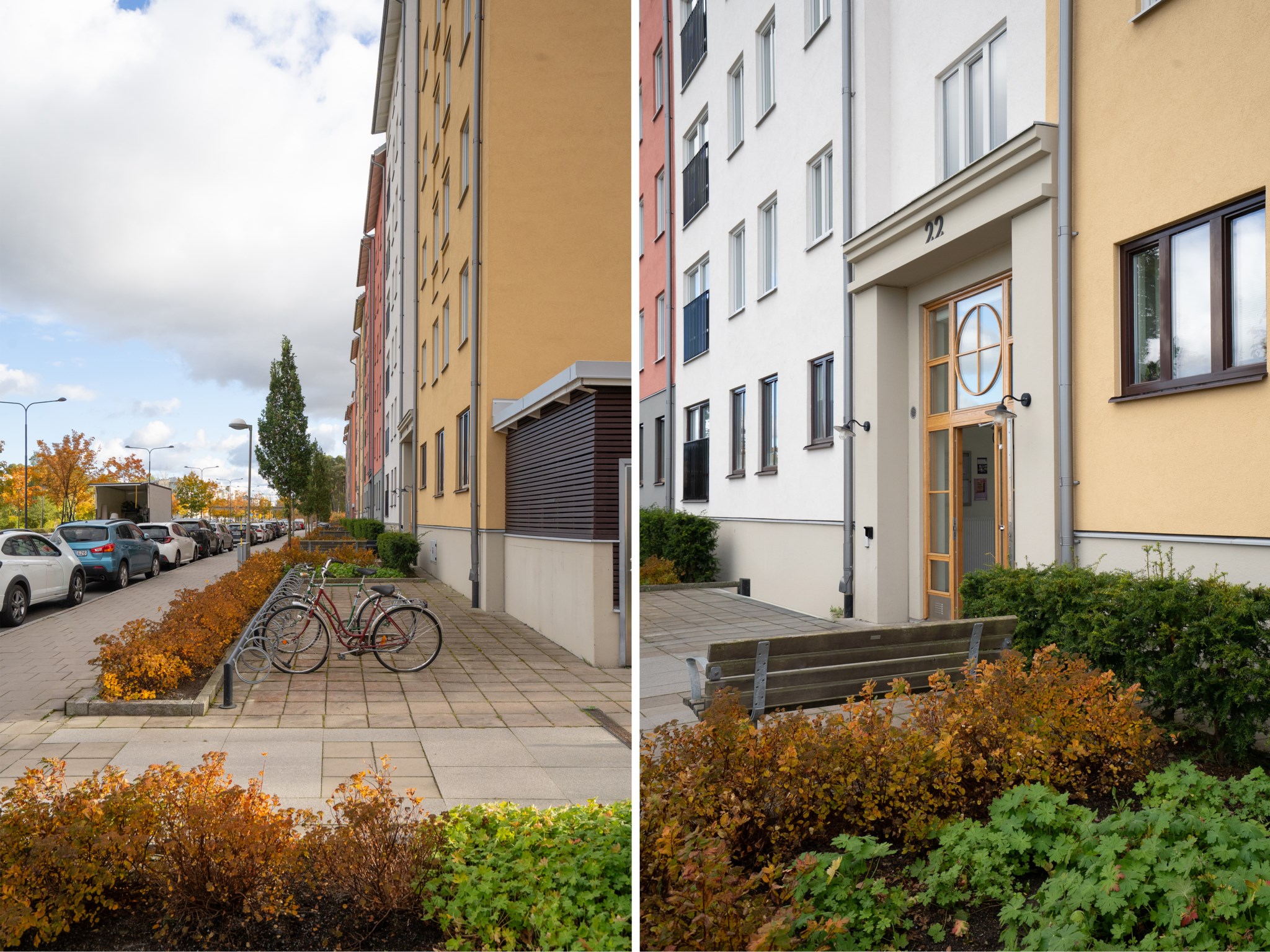 Området präglas av grönska, trygghet och närhet till naturen. Här bor du med ICA, Circle K och busshållplats utanför huset, med direktförbindelser mot Vällingby, Spånga och Järfälla. Tunnelbanan ligger på gångavstånd, vilket gör pendlingen smidig.