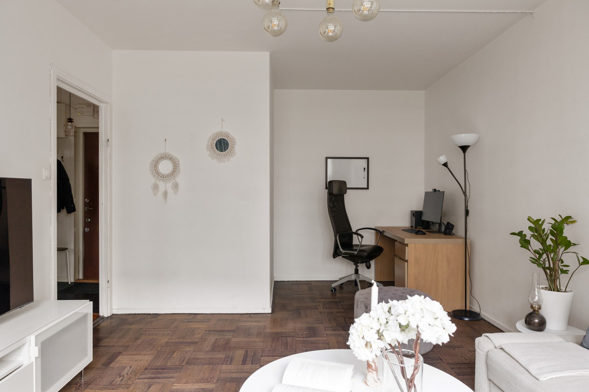 Bostaden präglas av en genomtänkt planlösning där ytorna utnyttjas på ett effektivt och naturligt sätt. Vardagsrummet är rymligt och lättmöblerat med plats för både soffgrupp och matbord, vilket skapar en trivsam miljö för såväl vardag som sociala tillställningar. Generöst ljusinsläpp bidrar till en luftig och behaglig känsla. Sovrummet erbjuder en rofylld atmosfär med god plats för dubbelsäng och förvaring. Köket är funktionellt och välutrustat med bra arbetsytor och förvaringsmöjligheter, och badrummet är praktiskt utformat för en smidig vardag. Sammantaget är detta en bostad som är lätt att trivas i från första stund.