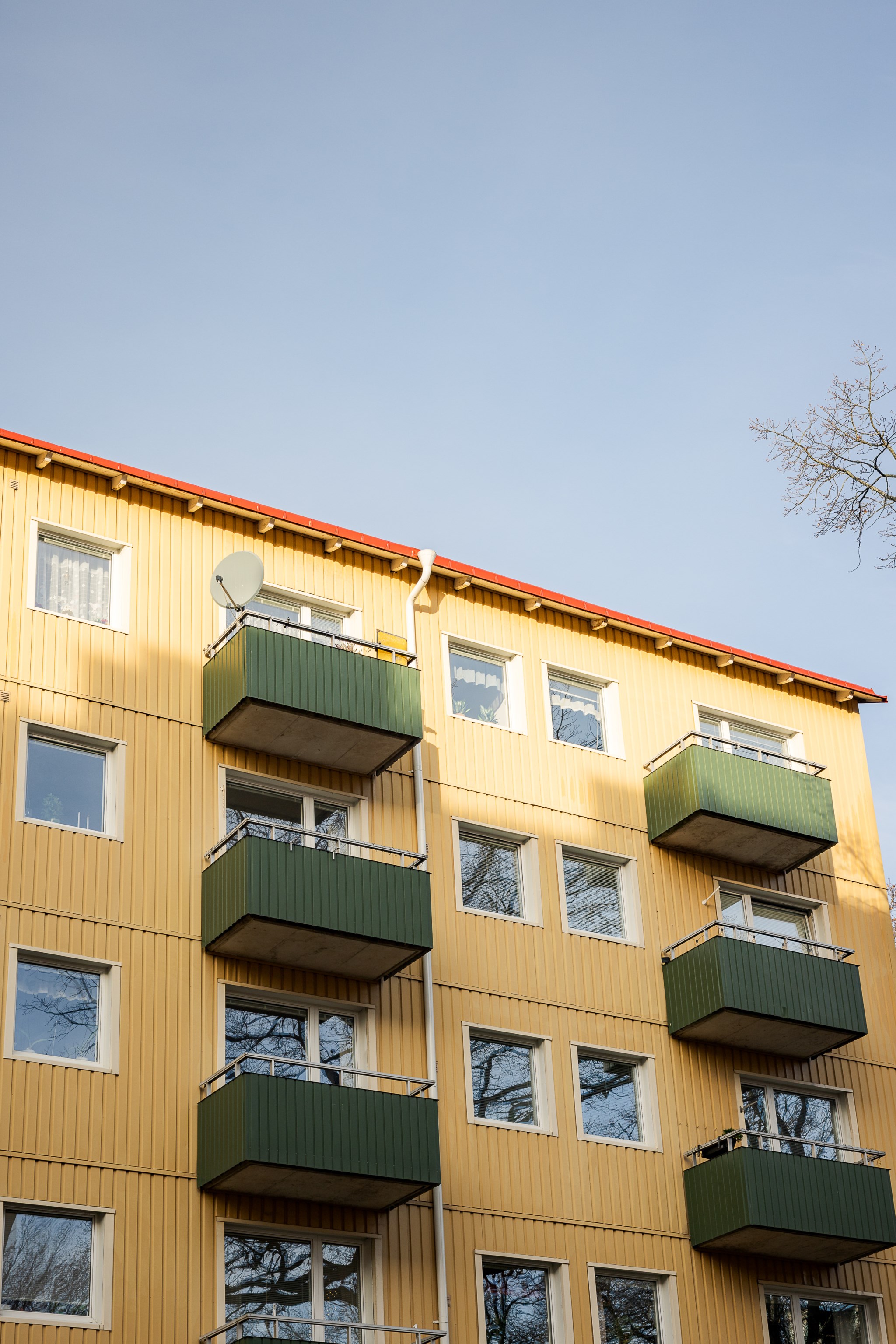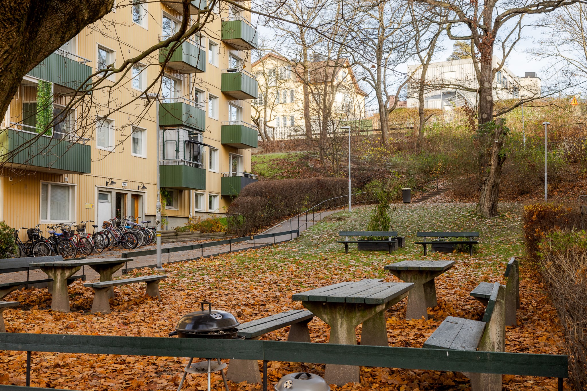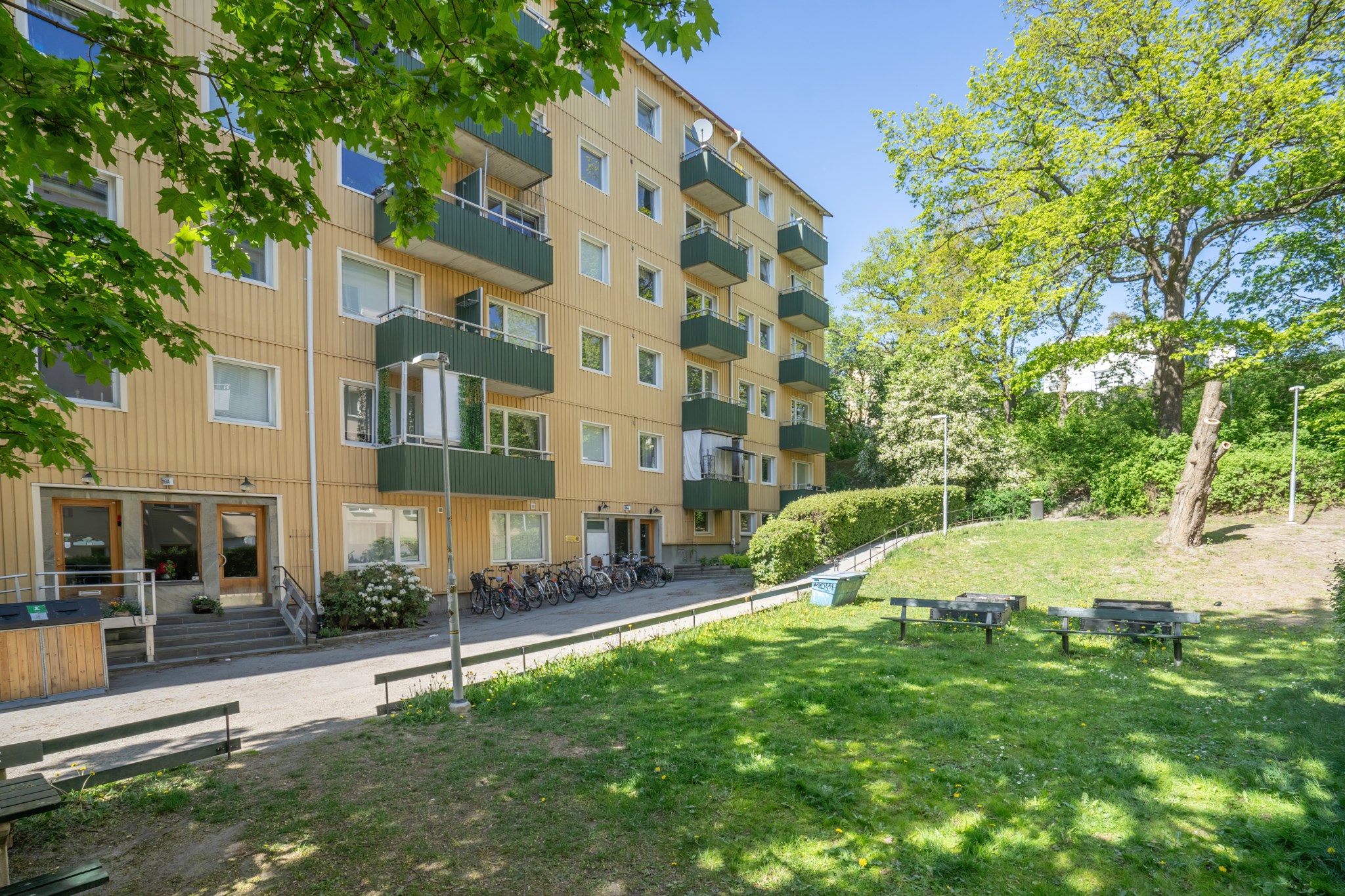 Från bostaden når du den soliga balkongen – en naturlig förlängning av hemmet där du kan njuta av solen stora delar av dagen. Här finns utrymme för både avkoppling och sociala stunder, oavsett om det handlar om morgonkaffe i stillhet eller sena sommarkvällar i gott sällskap. Läget högst upp i huset bidrar till en privat och ostörd känsla, långt bort från insyn och störande moment.