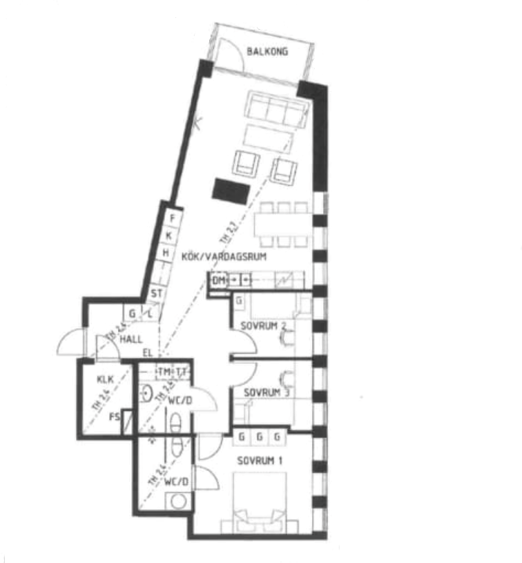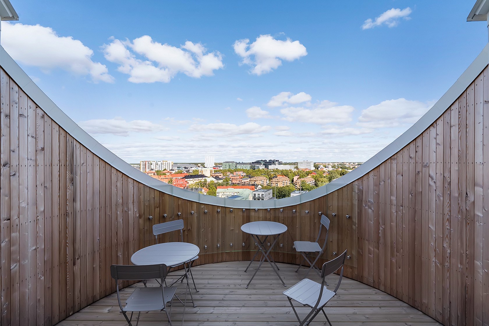 Den rymliga balkongen blir en naturlig förlängning av bostaden och erbjuder en perfekt plats för avkoppling eller middagar i kvällssolen.