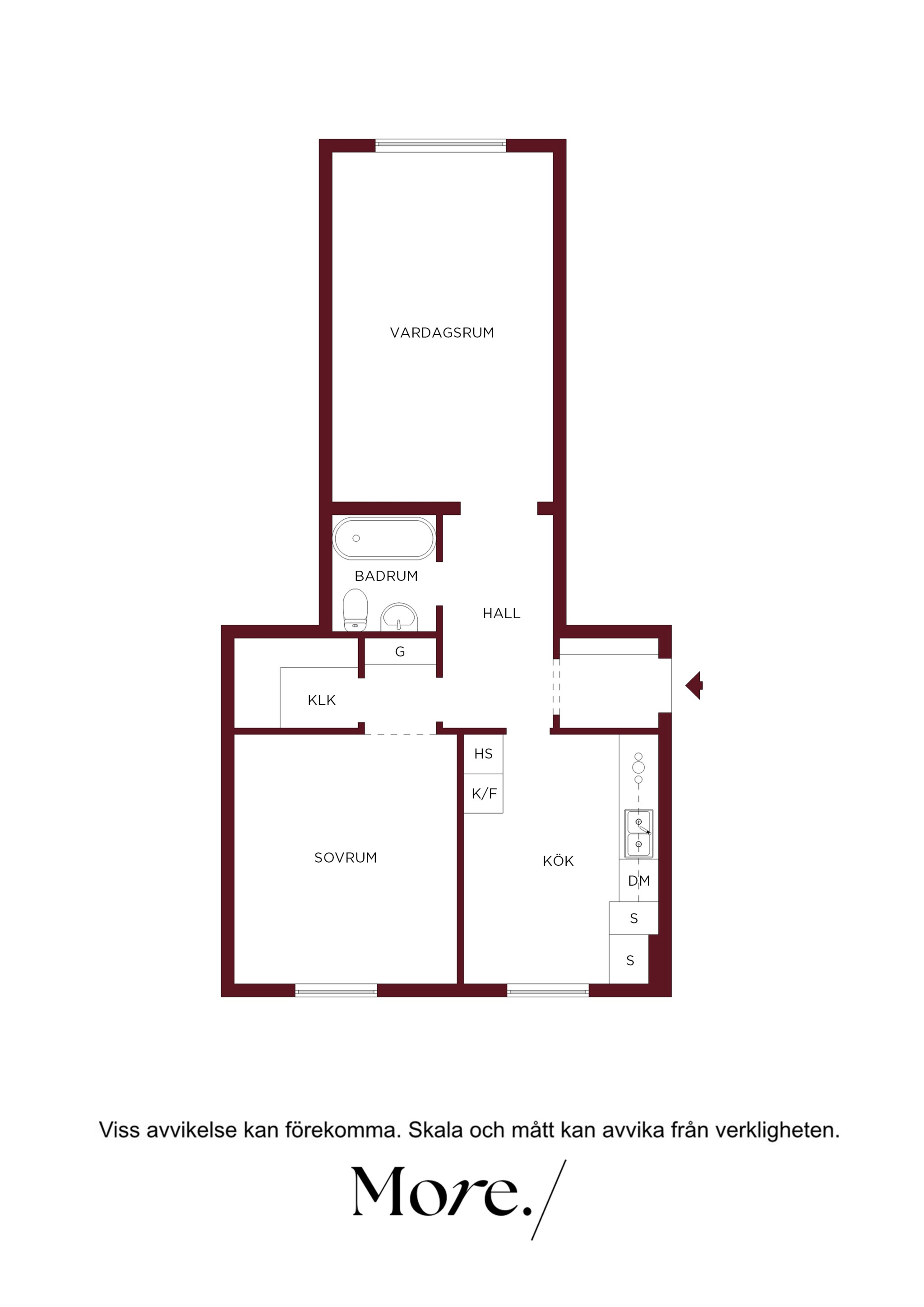 Redan i hallen sätts tonen för bostaden. Den varma färgsättningen skapar ett starkt första intryck och här finns gott om plats för ytterkläder och förvaring. Från hallen nås bostadens samtliga rum vilket ger en praktisk och funktionell planlösning.