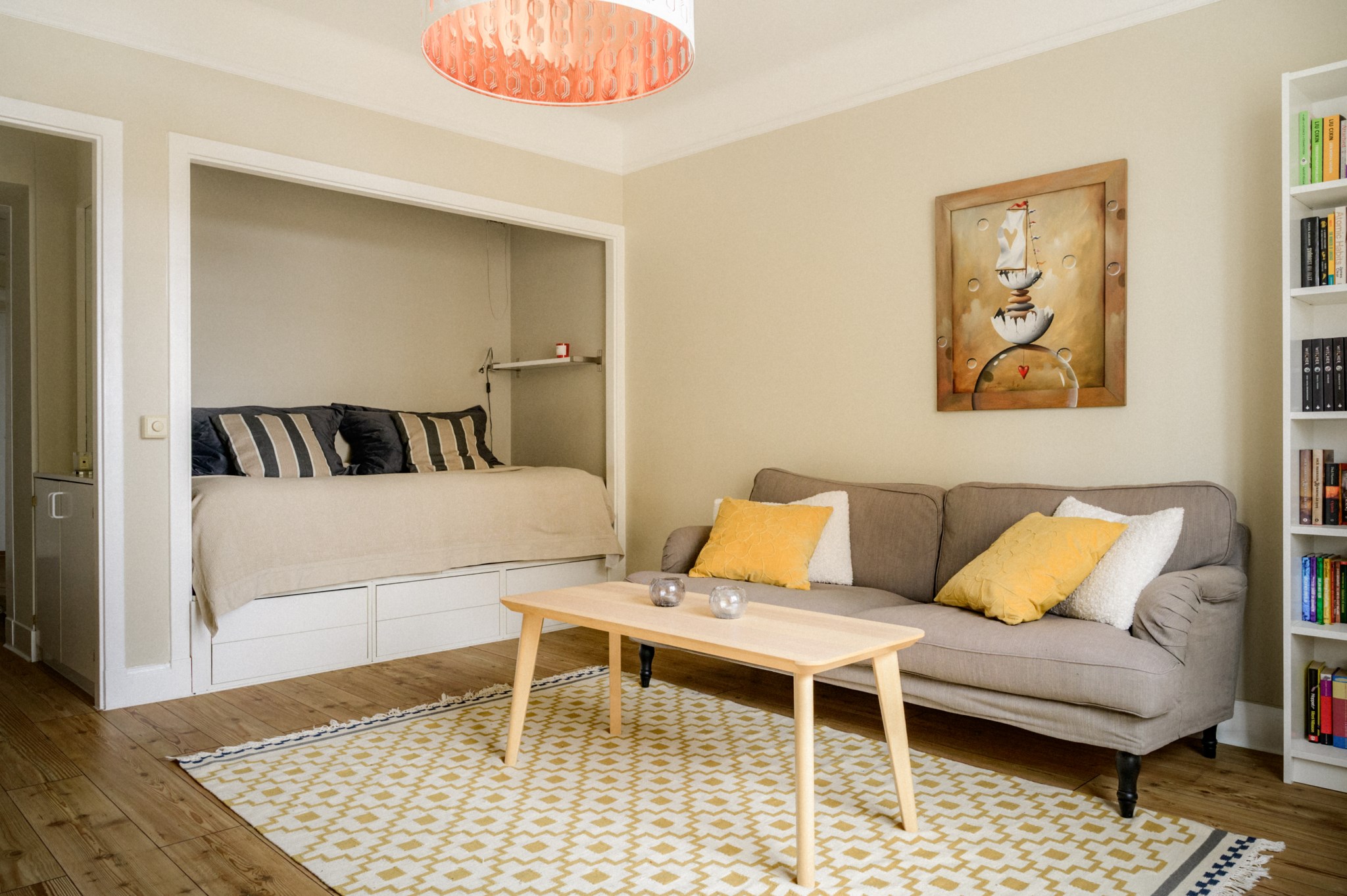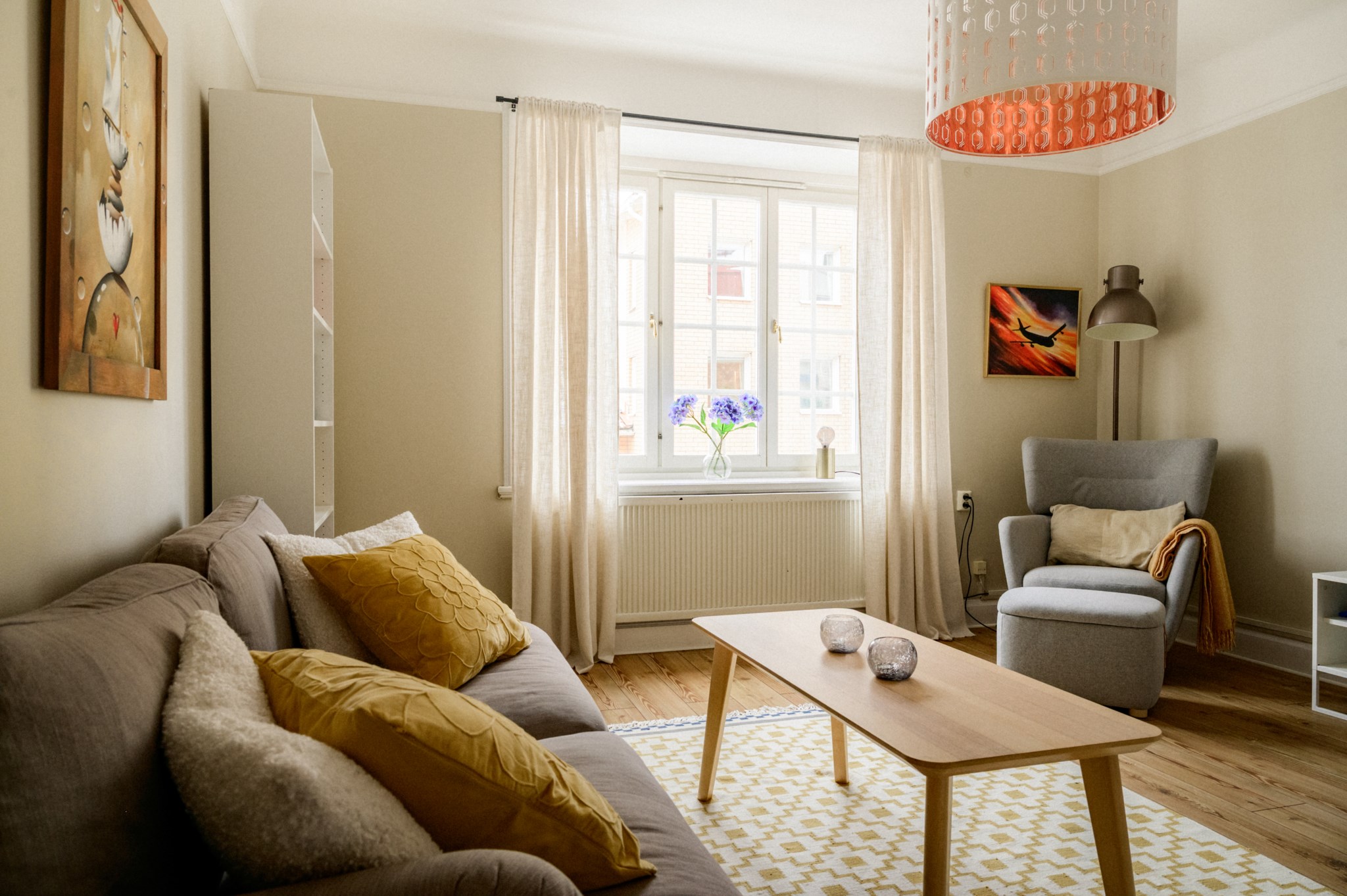 Redan vid första steget in möts du av en ljus och harmonisk helhet. Väggarna går i ljusa, moderna toner som förstärker rymden och skapar en stilren bas att inreda efter, oavsett om du föredrar skandinavisk minimalism eller en mer varm och ombonad känsla. Bostaden har ett insynsfritt och privat läge, vilket ger ett lugn som är svårt att hitta så centralt.
