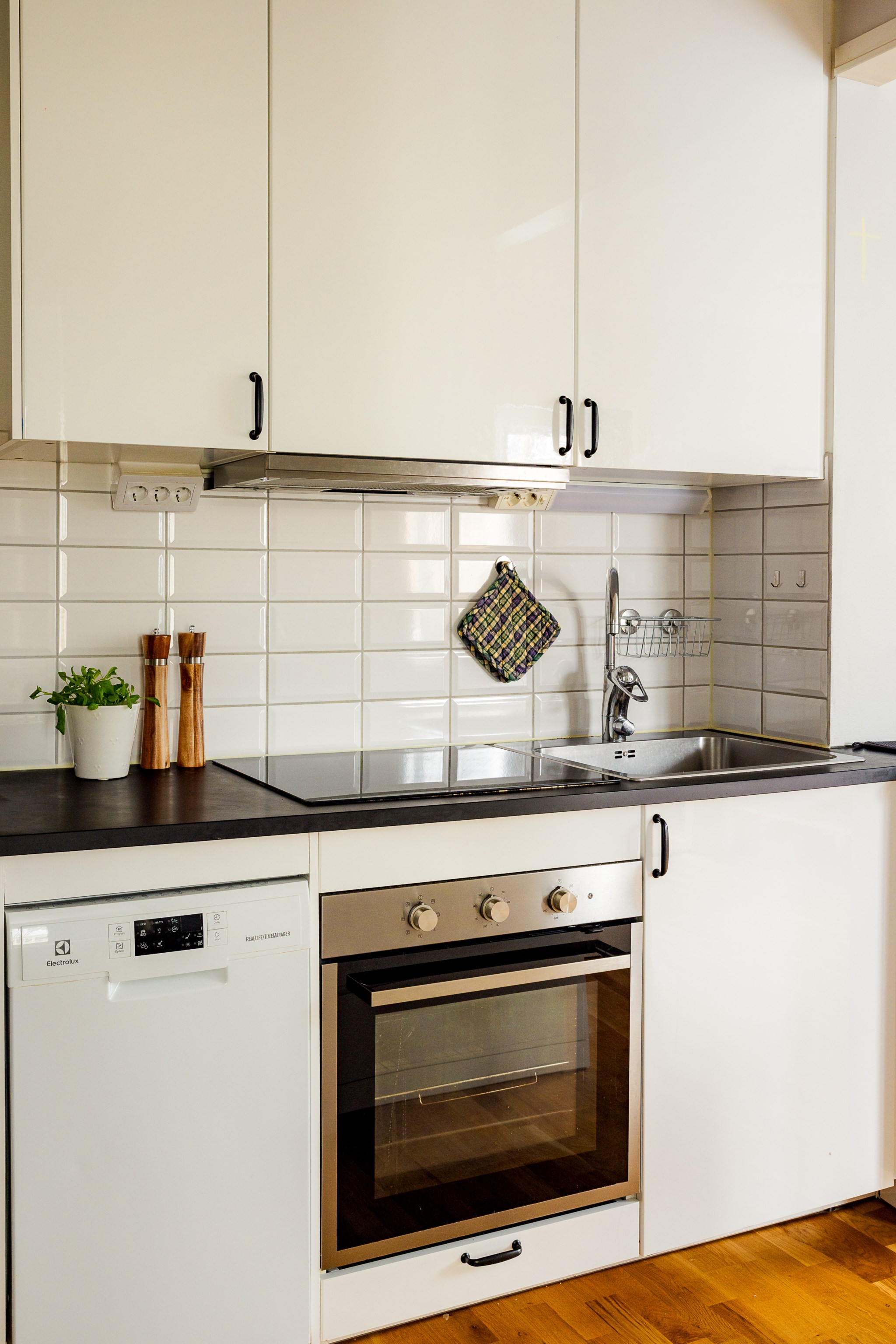 Två separata sovrum ger flexibilitet – perfekt för paret, den lilla familjen eller för dig som vill kombinera boende med hemmakontor. Det helkaklade badrummet håller en exklusiv känsla och är utrustat tvättmaskin, och takdusch.